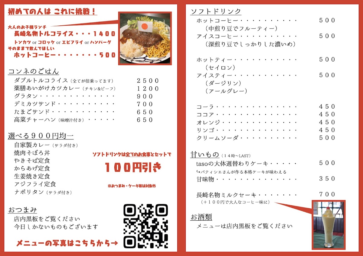 Cuisine Type: Comne specializes in a unique blend of comforting Japanese dishes, with a standout focus on the renowned Nagasaki dish—Turkish Rice (トルコライス). This dish is a luscious medley that delivers a hearty serving of pilaf, a juicy hamburger, and perfectly cooked spaghetti, all beautifully plated to induce instant joy. The vibrant presentation is sure to elicit smiles even before the first bite.